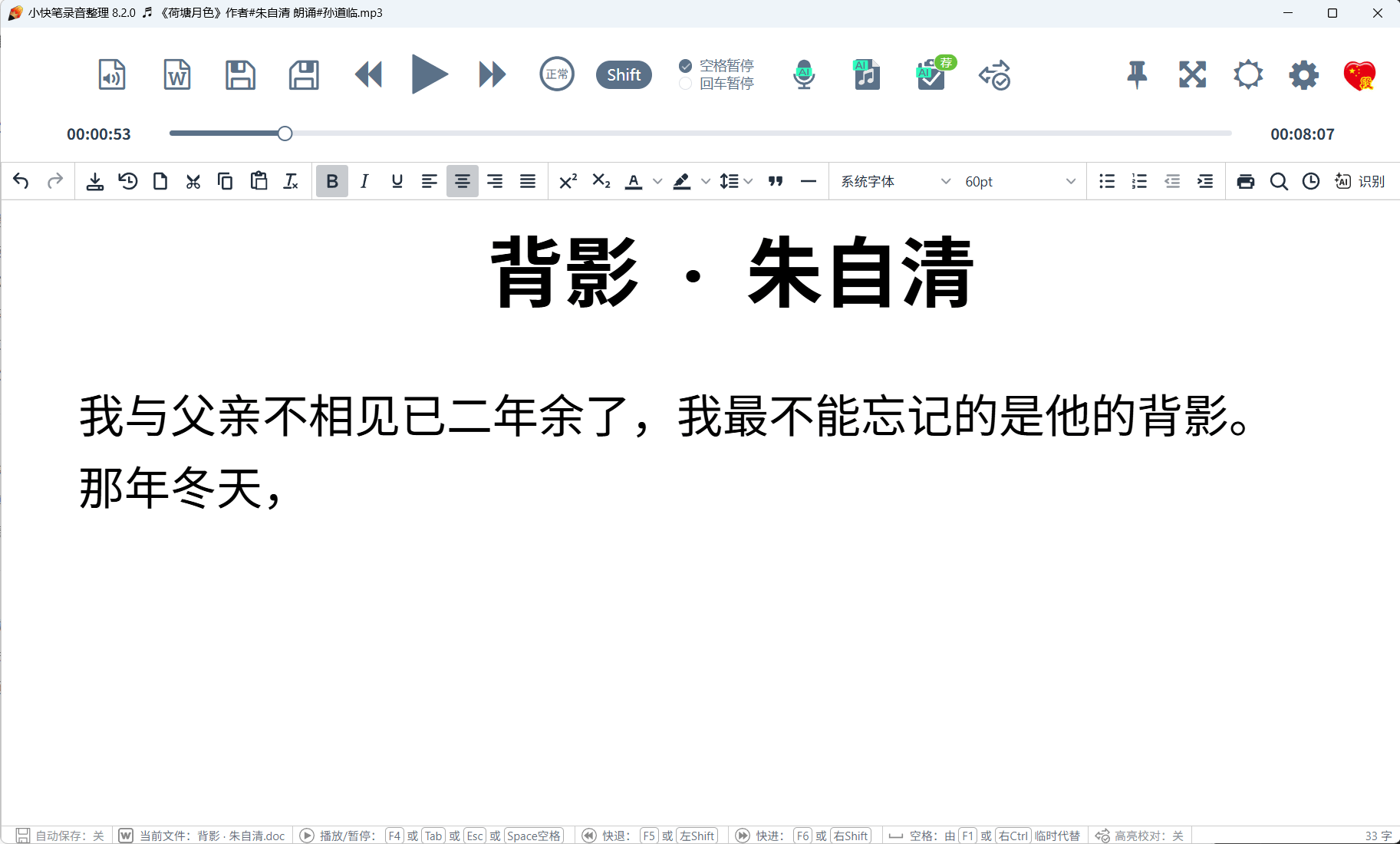 小快笔录音整理工具 8.2 是一款专业高效的录音转文字解决方案,通过 “手工听打精准编辑 + AI实时转写批量处理” 双模式自由切换,全面覆盖从法律庭审、访谈精校到会议纪要、课程录音的全场景需求。无论您是专业听打员还是普通办公人员,小快笔8.2都能让录音整理工作变得前所未有的轻松高效。