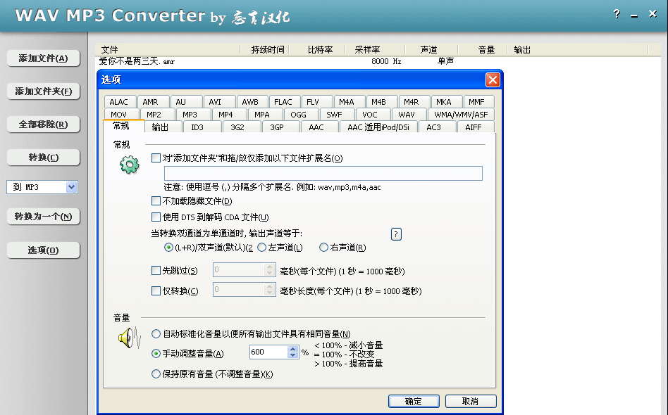 很多时候,因为录音笔在会场距离发言者或音箱较远,录音整理时声音较小,听不太清,可以使用这款WAV MP3 Converter V4.3.2 (绿色汉化版)把音频文件的音量加大到你想要的任意值。